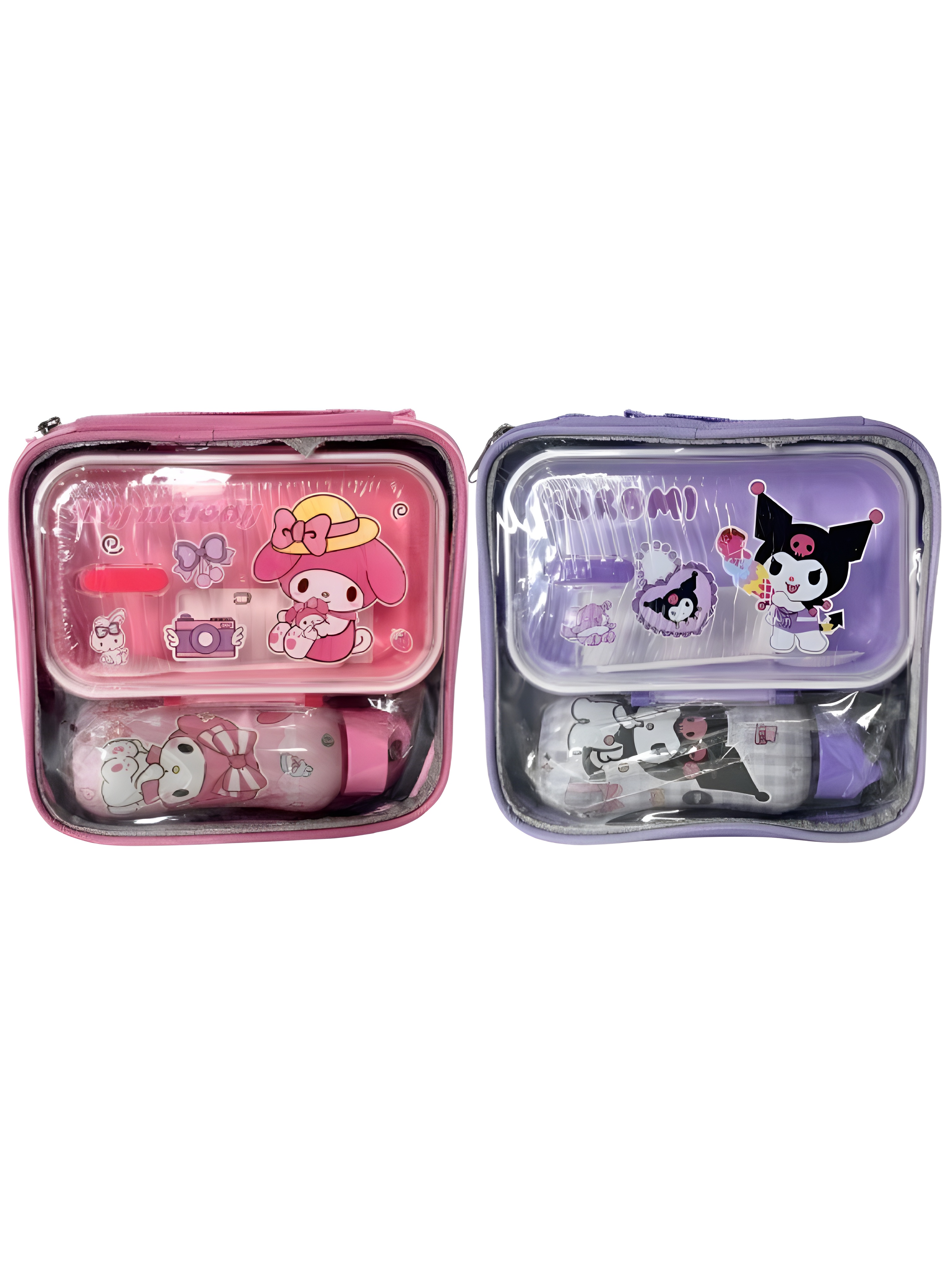 ظرف غذا کودک سه‌قسمتی طرح Kuromi با داخل استیل و بدنه پلاستیکی