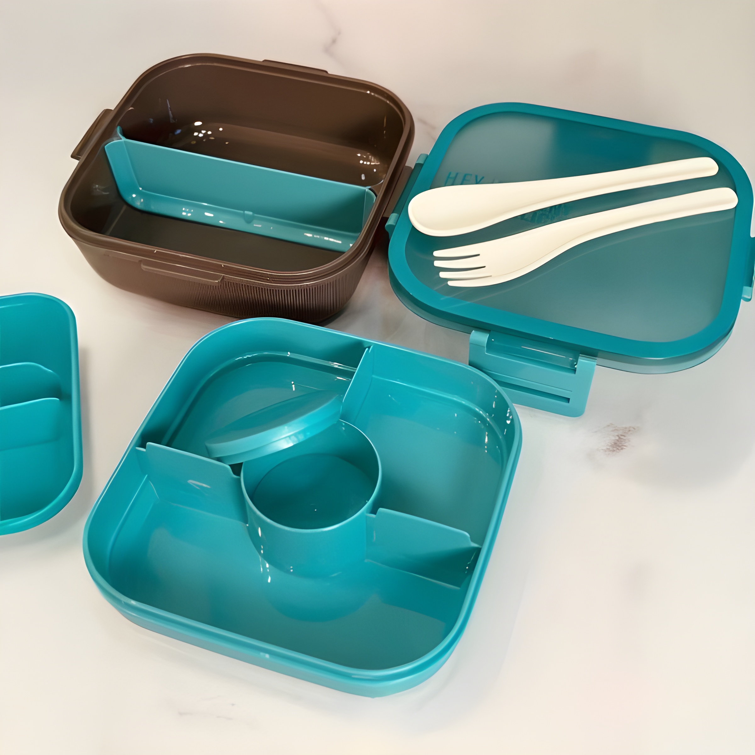 این ظرف به همراه **قاشق و چنگال مخصوص** خود ارائه میشود که به راحتی در قسمت بالایی ظرف جای میگیرند و همیشه ابزار لازم برای صرف غذا را در اختیار خواهید داشت. همچنین، دارای **مقسم غذای قابل جدا شدن** است که به شما امکان میدهد فضای داخلی را بر اساس نیاز خود شخصیسازی کنید.