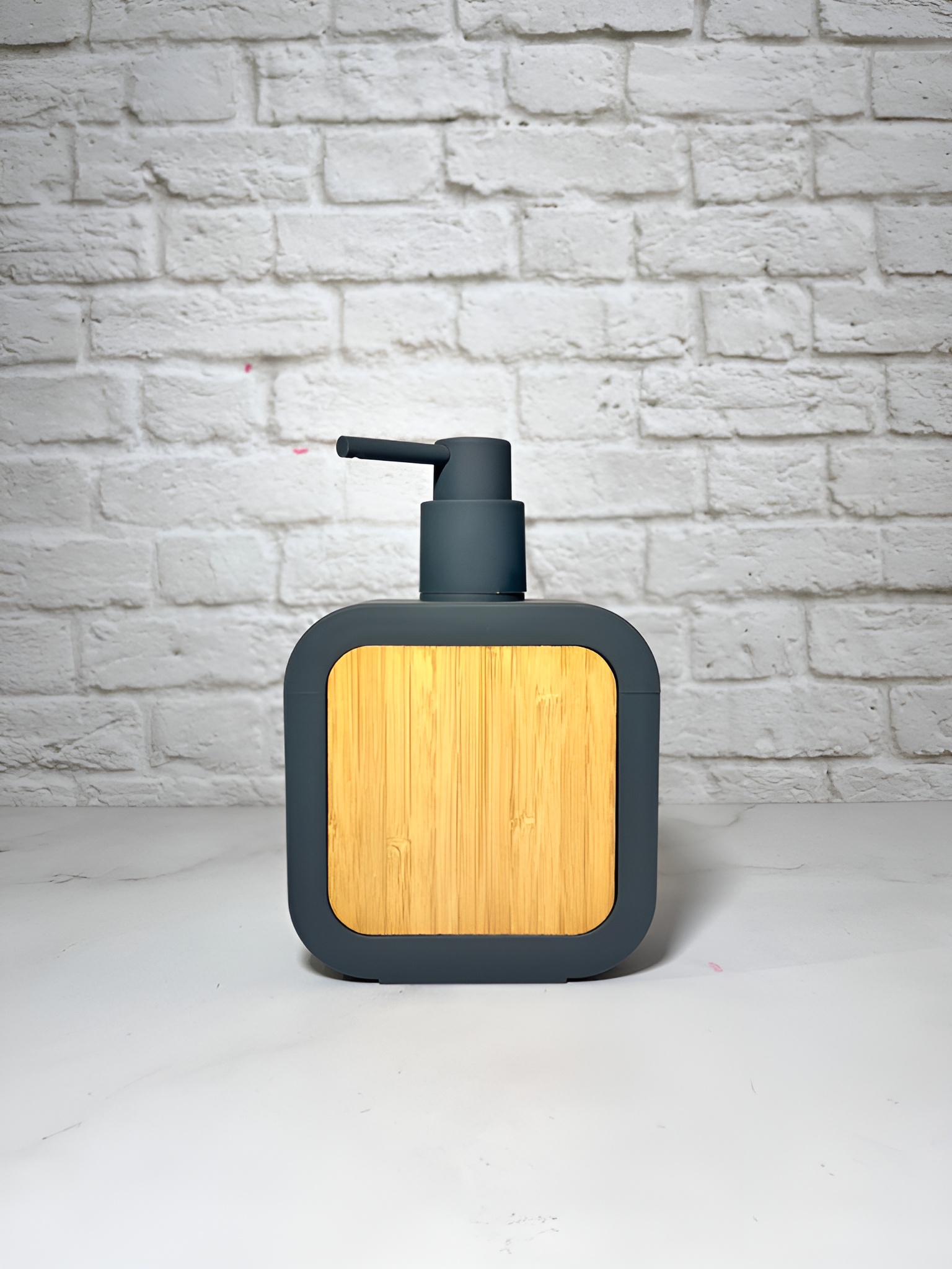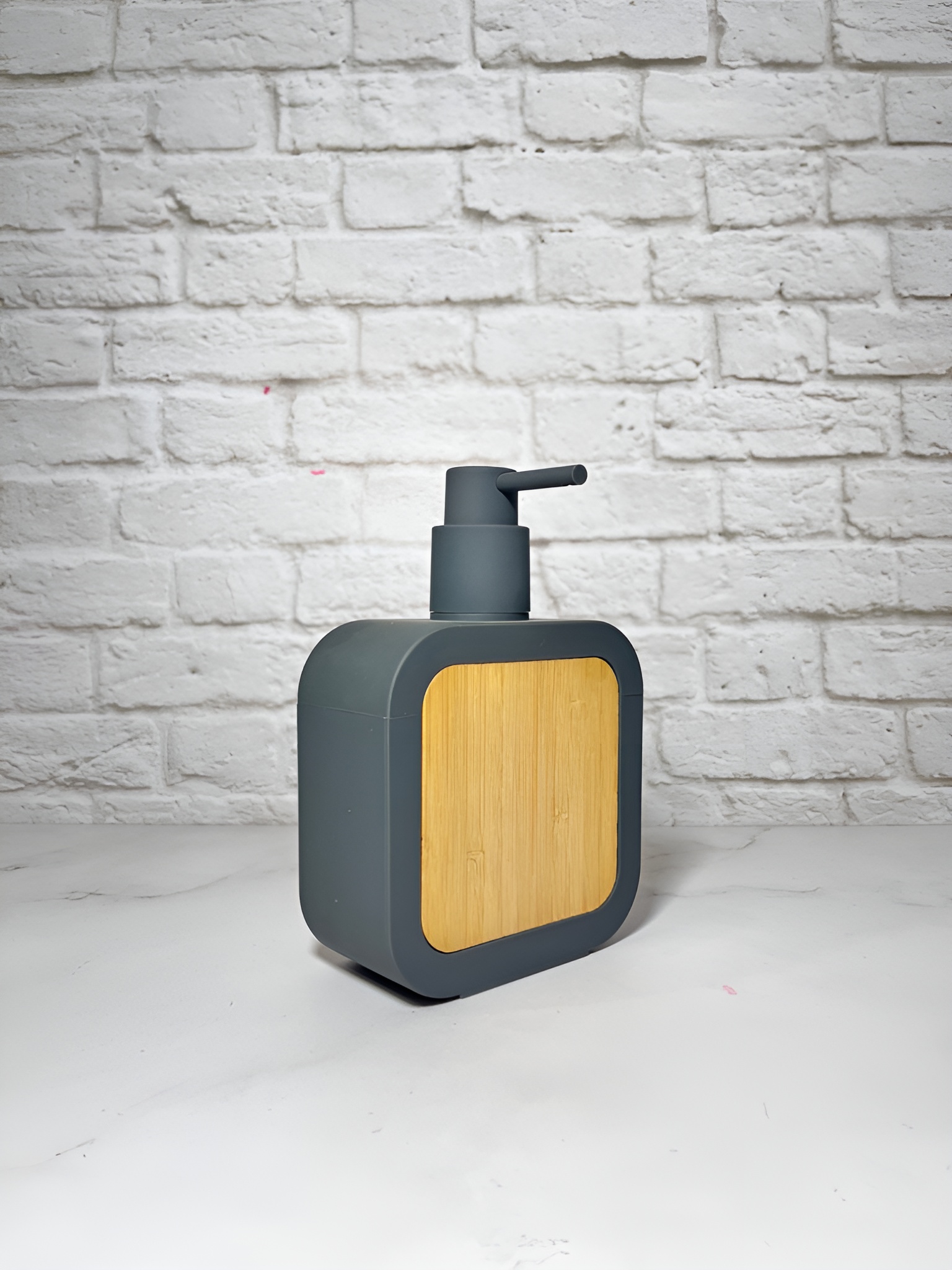 جا مایع دستشویی مدرن با ترکیب جذاب متریال طرح چوب و بدنه مشکی مات، انتخابی ایدهآل برای سرویس بهداشتی یا آشپزخانههای شیک و مینیمال. این محصول با طراحی مربعشکل و نازل فشاری، هم از نظر زیبایی و هم از نظر کارایی یک گزینه کامل است.