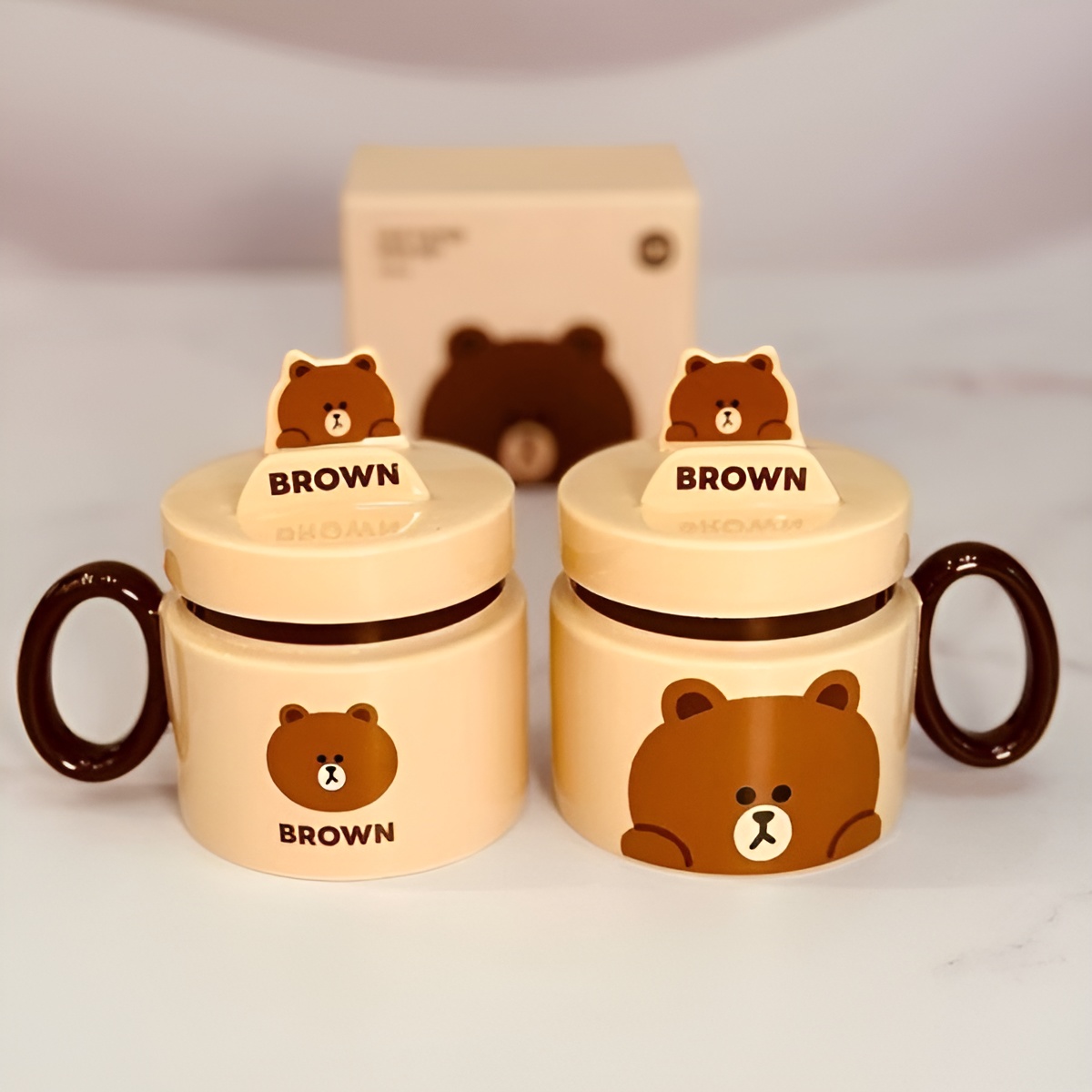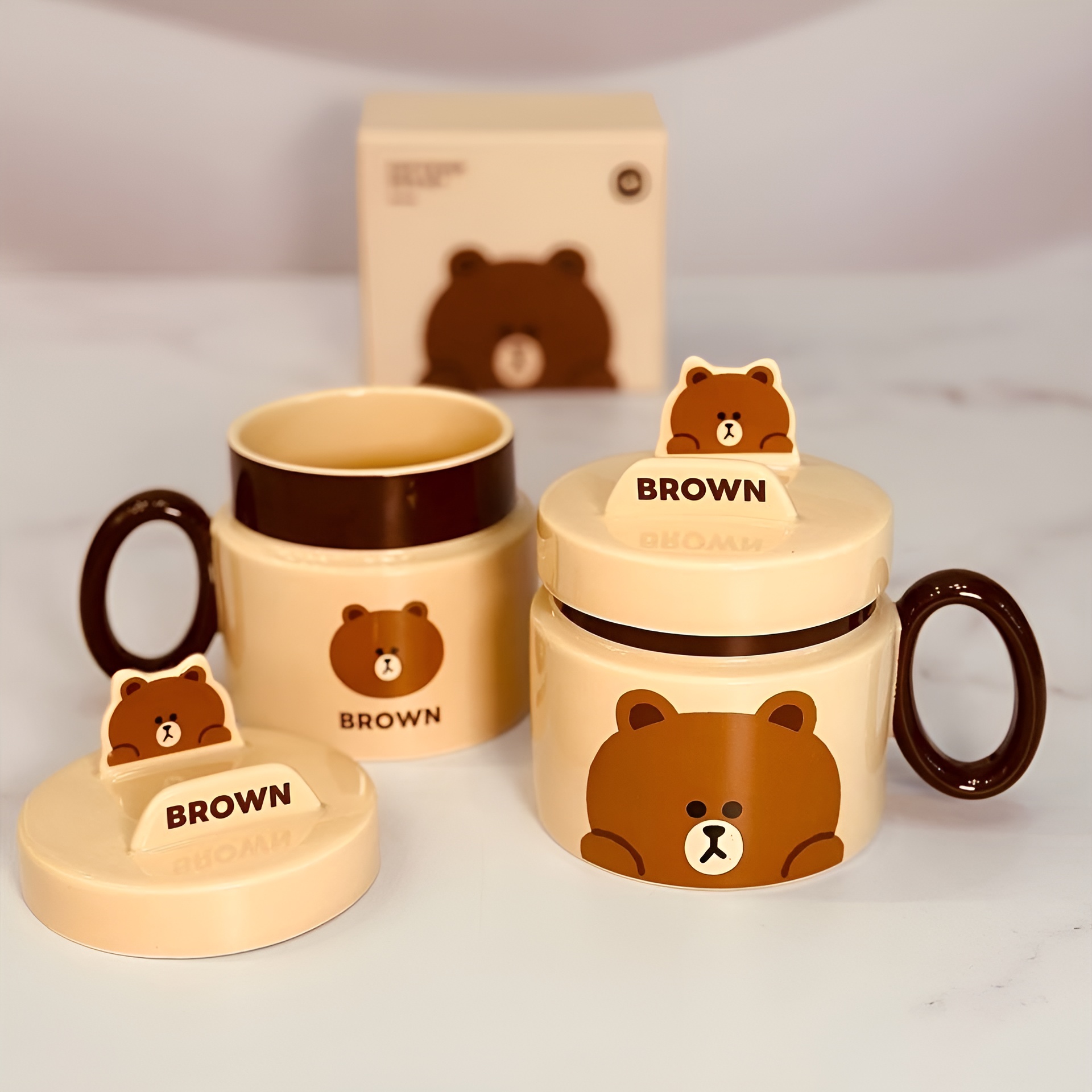 ماگ اورجینال تدی قهوه‌ای همراه با درب سرامیکی و طراحی خاص