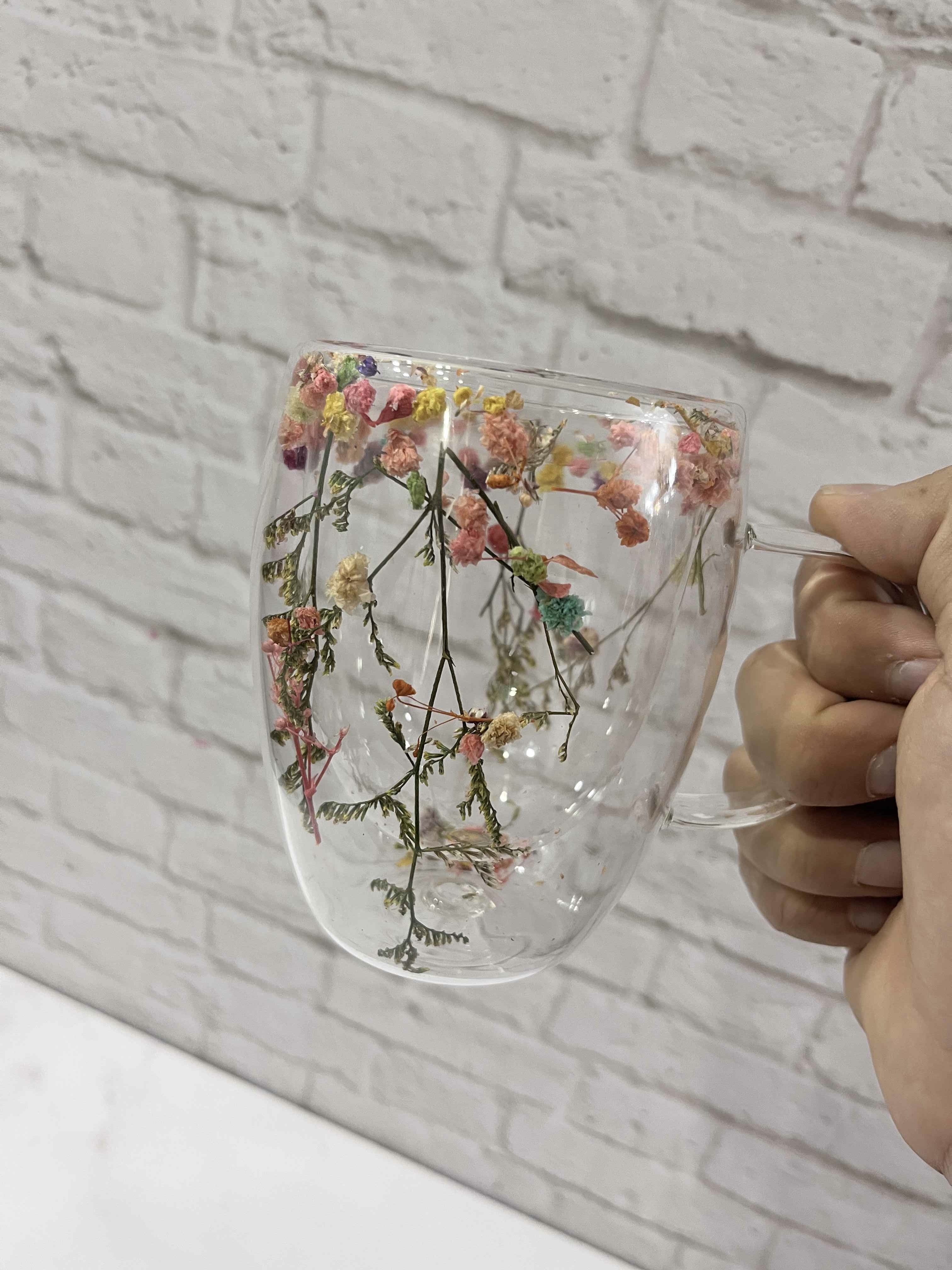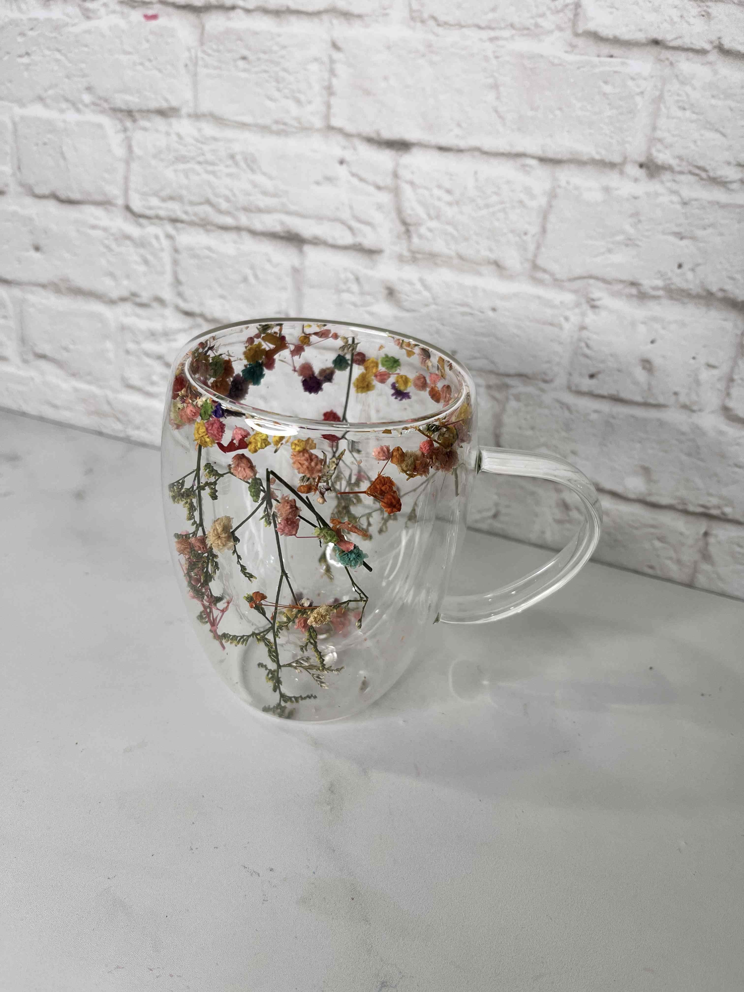 ماگ پیرکس دوجداره طرح گل دار ۳۵۰ میل