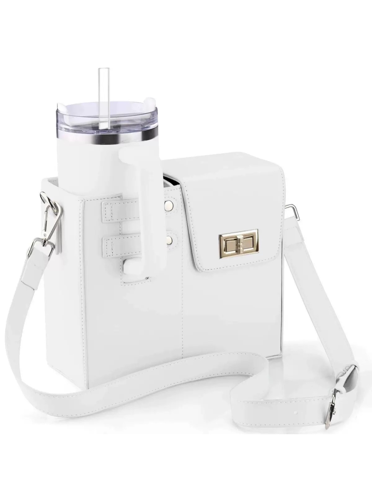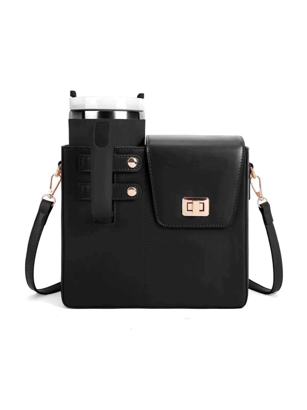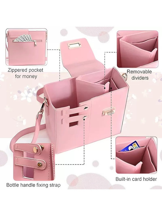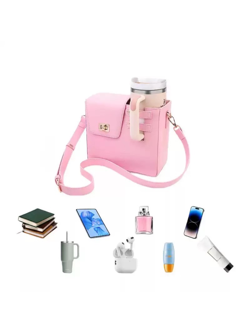 محفظه سمت چپ با دکمه، نگهدارنده تامبلر استنلی و قابلیت قفل کردن دسته آن - قسمت راست با درب قفلدار و محفظه داخلی چهارخانه، نگهدارنده موبایل و لوازم جانبی - زیپ در قسمت پشتی کیف برای دسترسی سریع و ساده - بند دوشی بلند، قابل تنظیم و سگکدار برای راحتی حمل