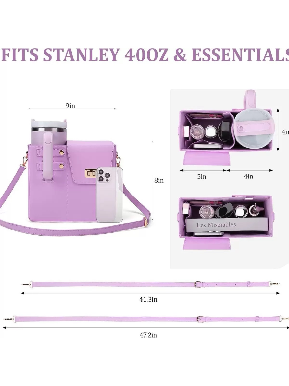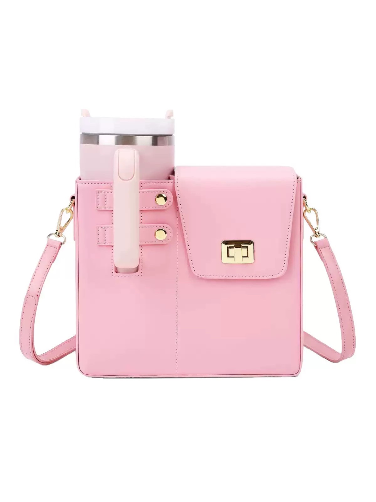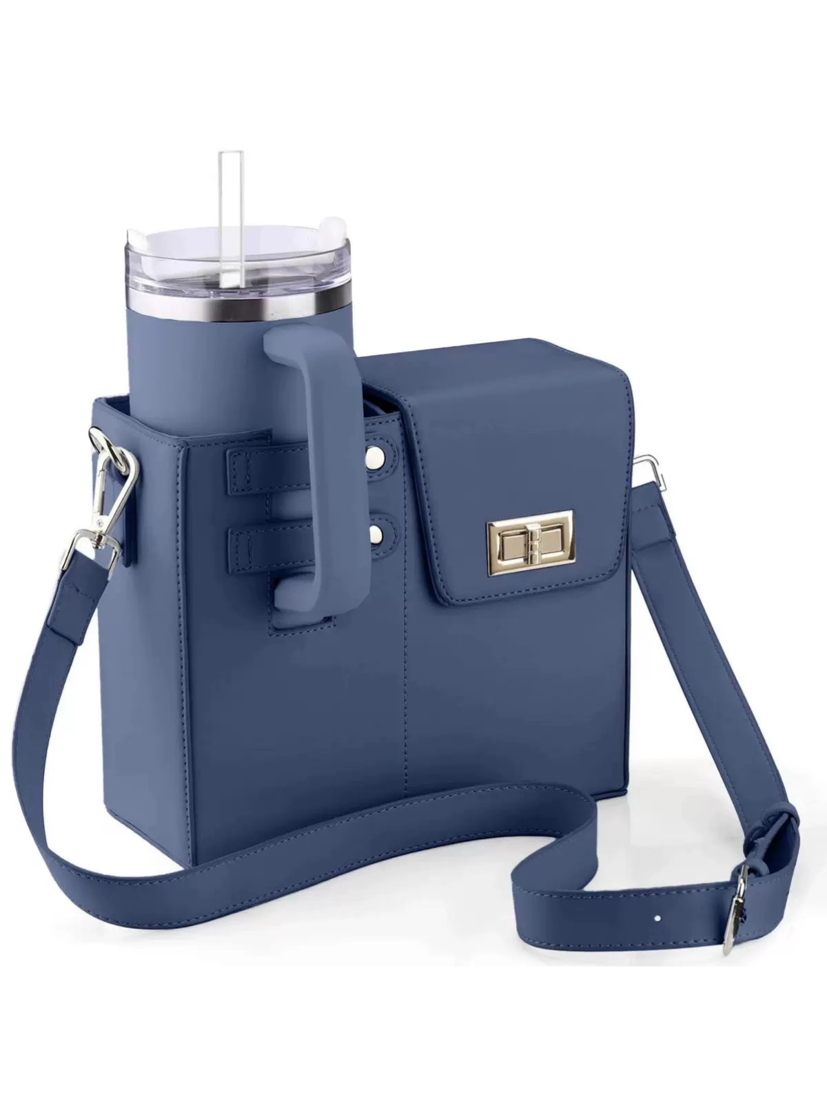 محفظه سمت چپ با دکمه، نگهدارنده تامبلر استنلی و قابلیت قفل کردن دسته آن - قسمت راست با درب قفلدار و محفظه داخلی چهارخانه، نگهدارنده موبایل و لوازم جانبی - زیپ در قسمت پشتی کیف برای دسترسی سریع و ساده - بند دوشی بلند، قابل تنظیم و سگکدار برای راحتی حمل