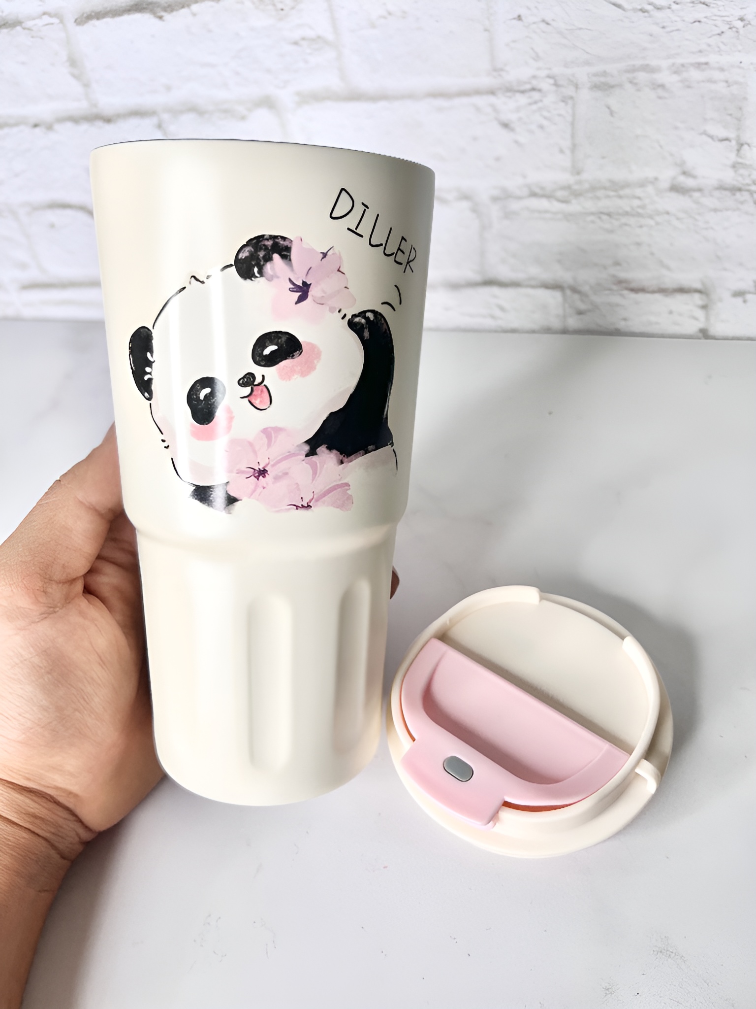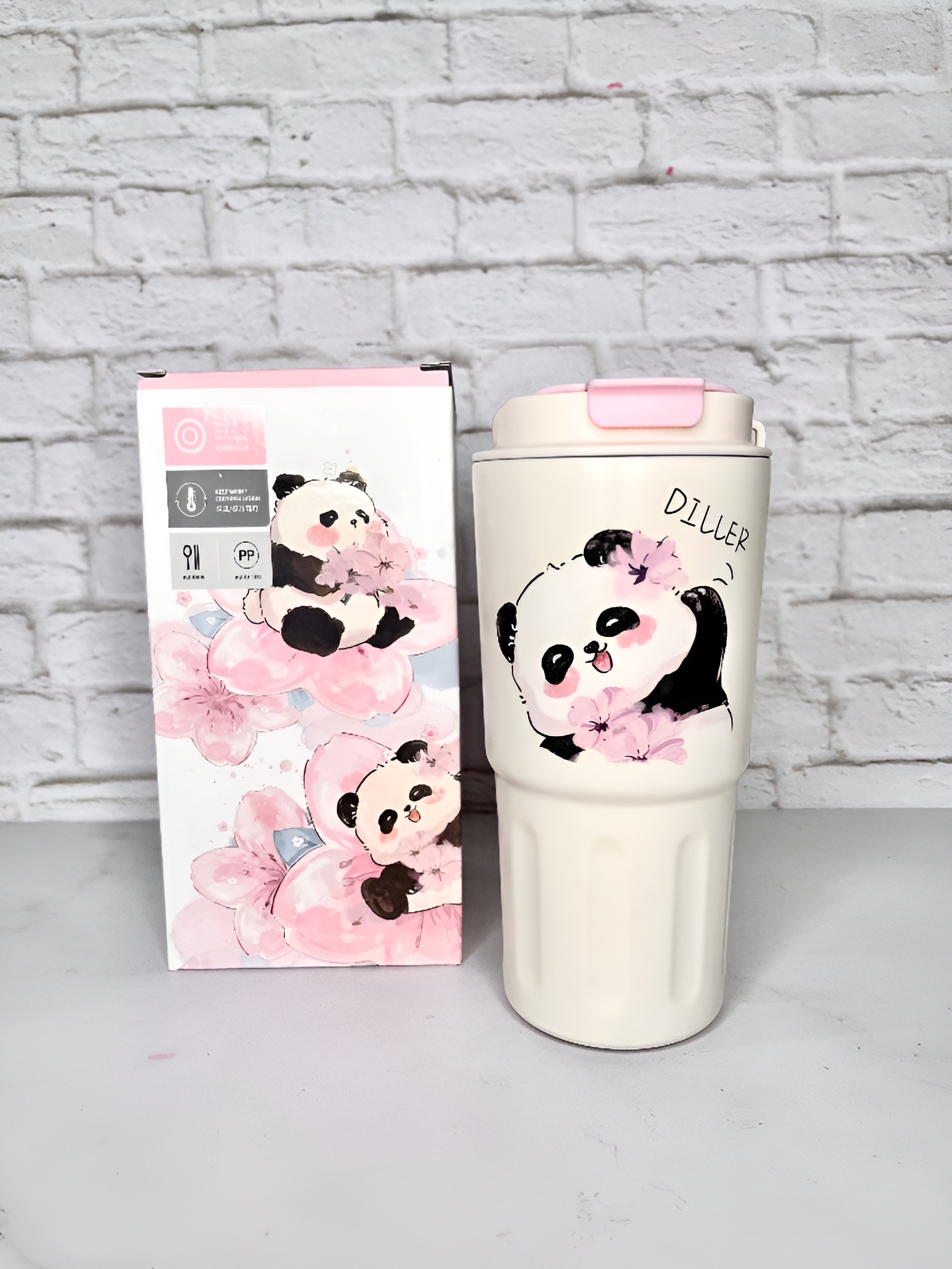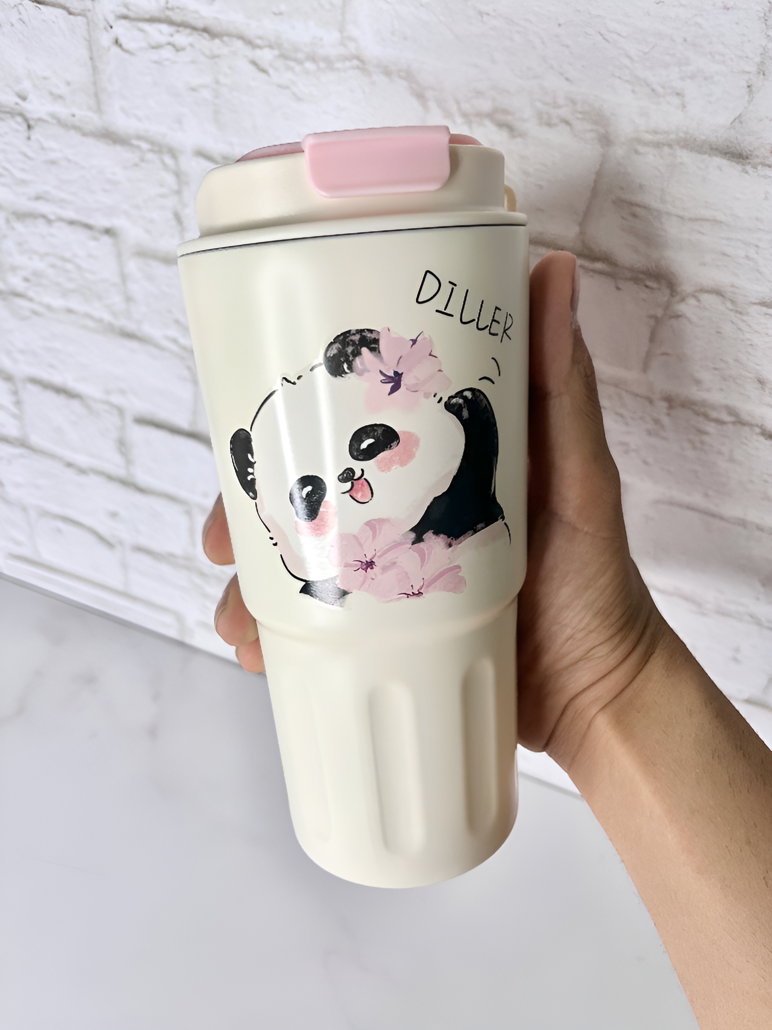 تراول ماگ Diller طرح پاندا 600 میل | ماگ فانتزی استیل دو جداره