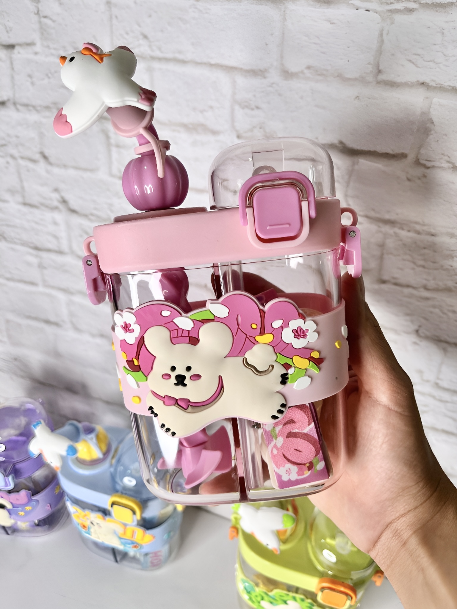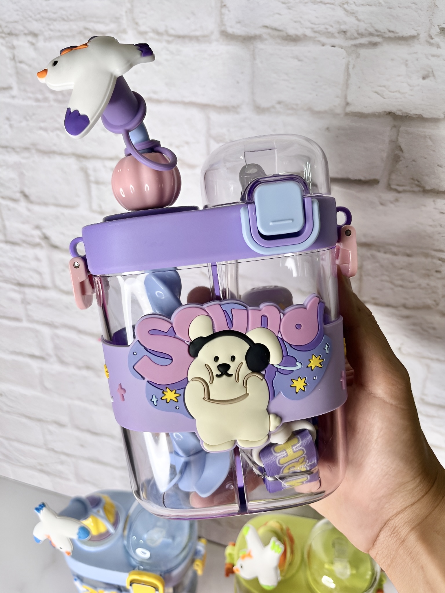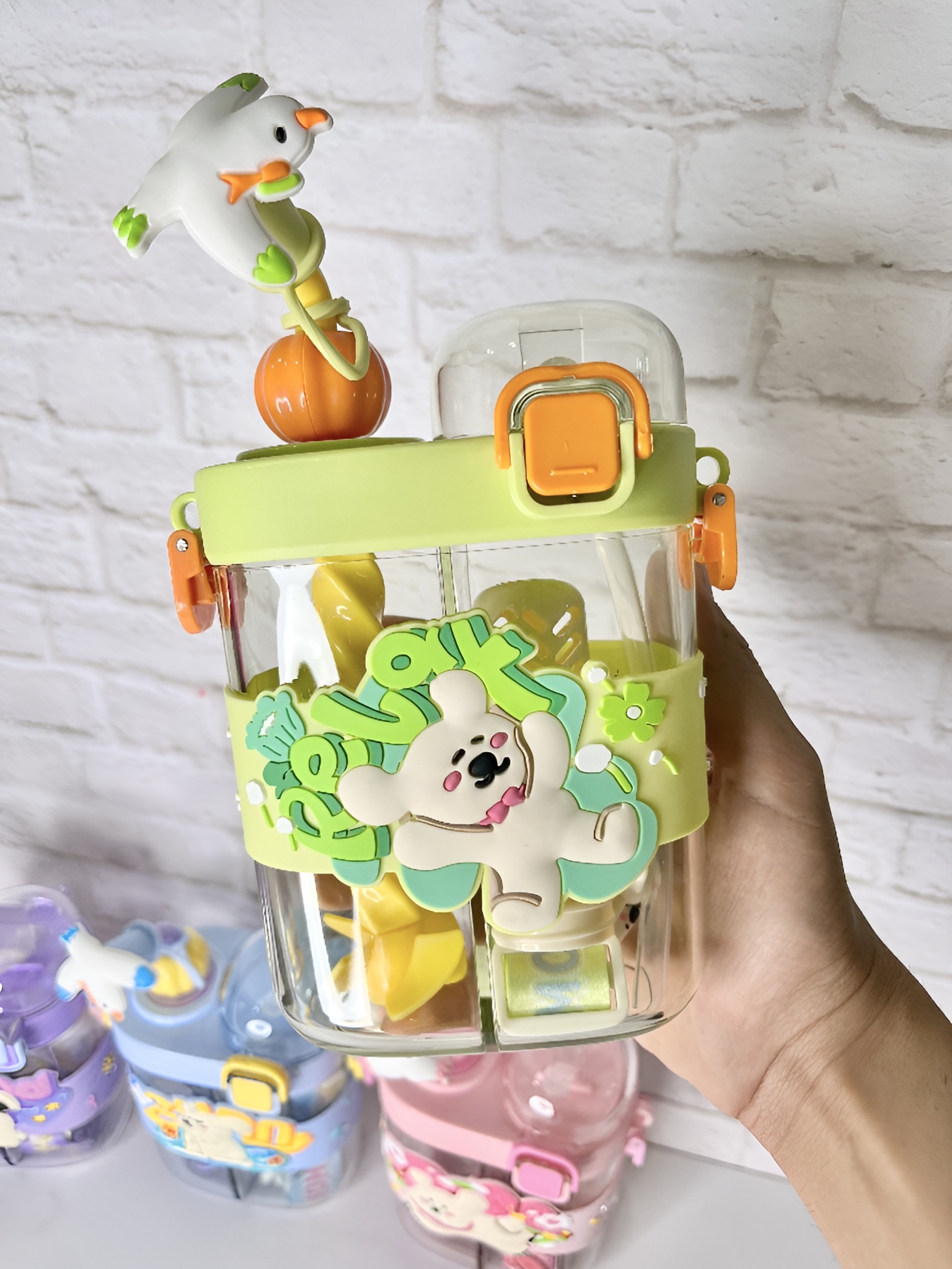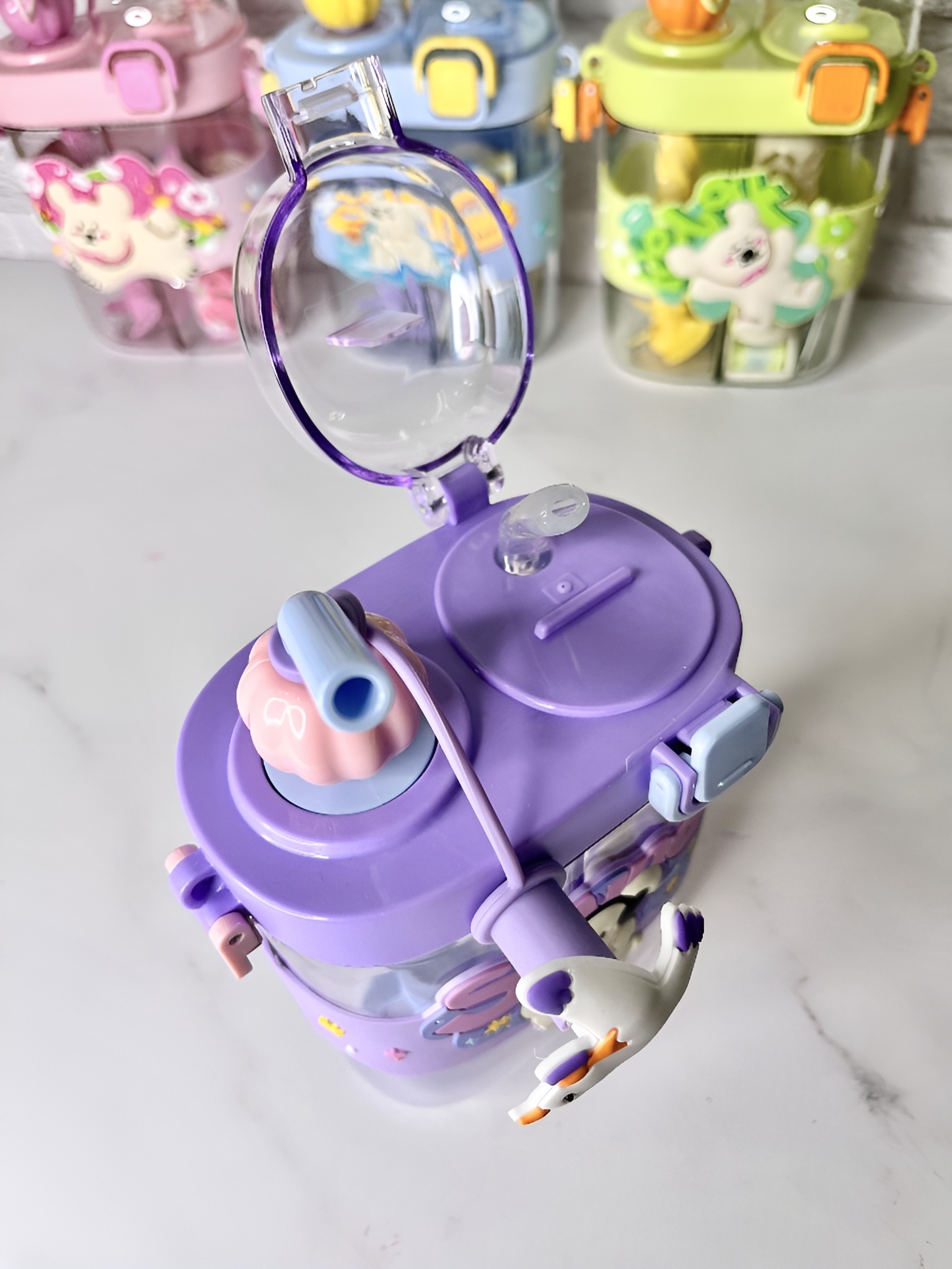 بطری آب کودک دو حالته حیوانی با نی نرم و درب ایمن