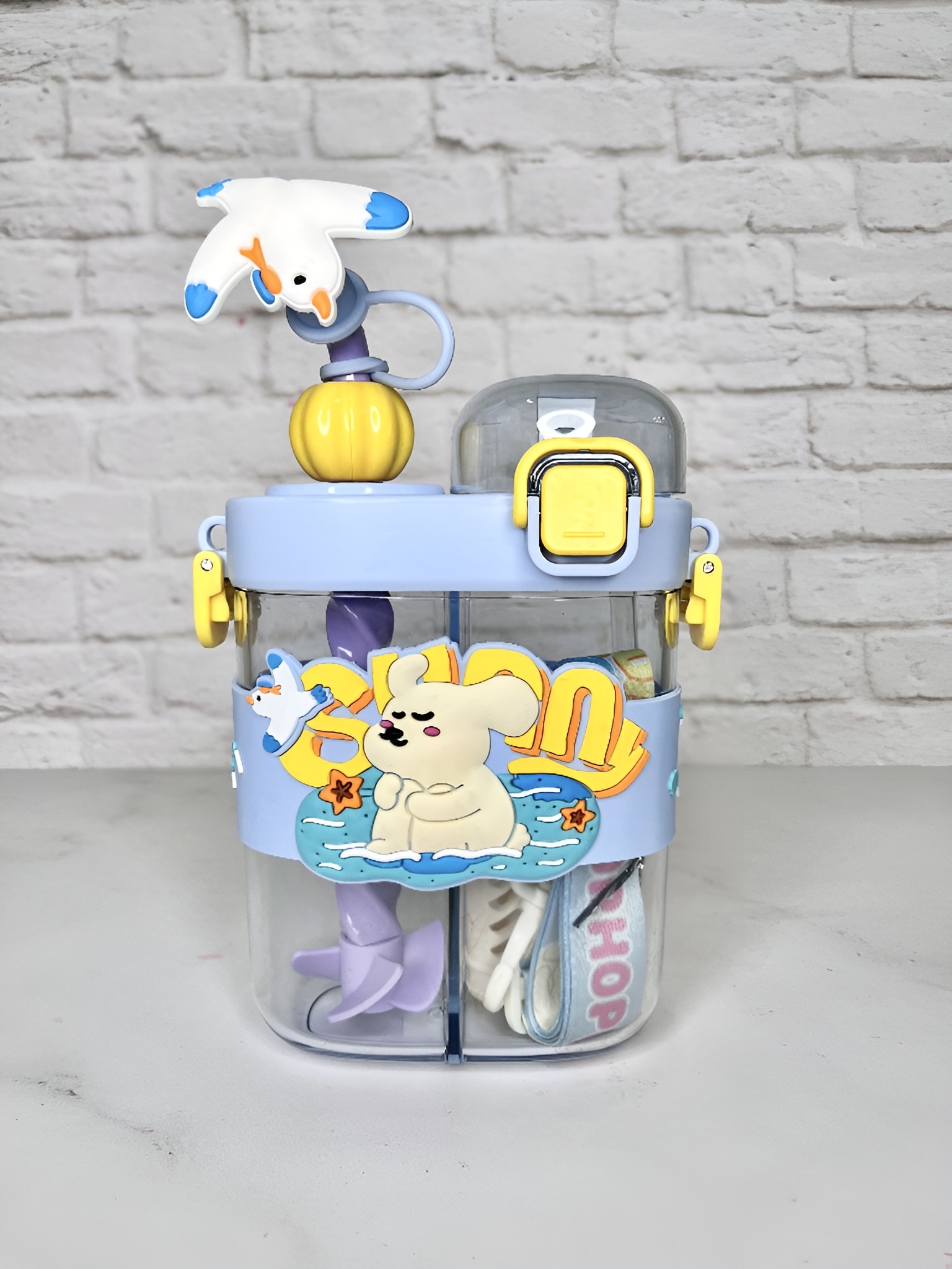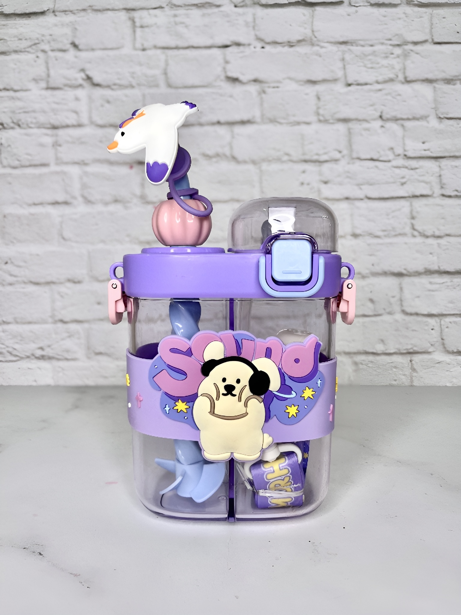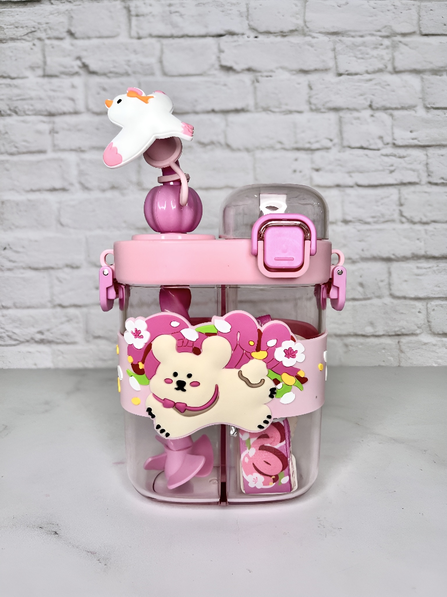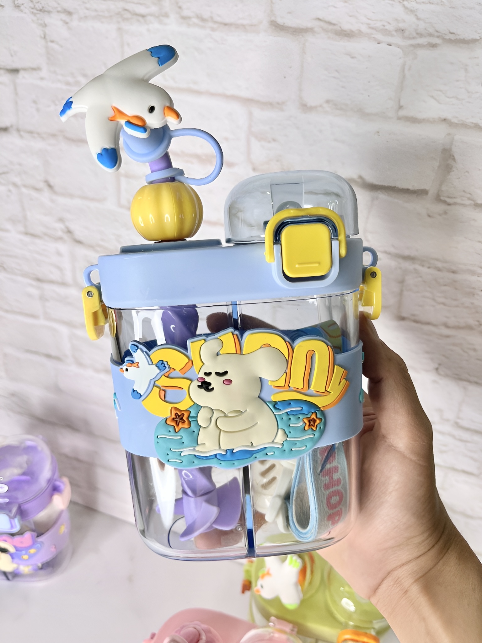 بطری آب کودک دو حالته حیوانی با نی نرم و درب ایمن