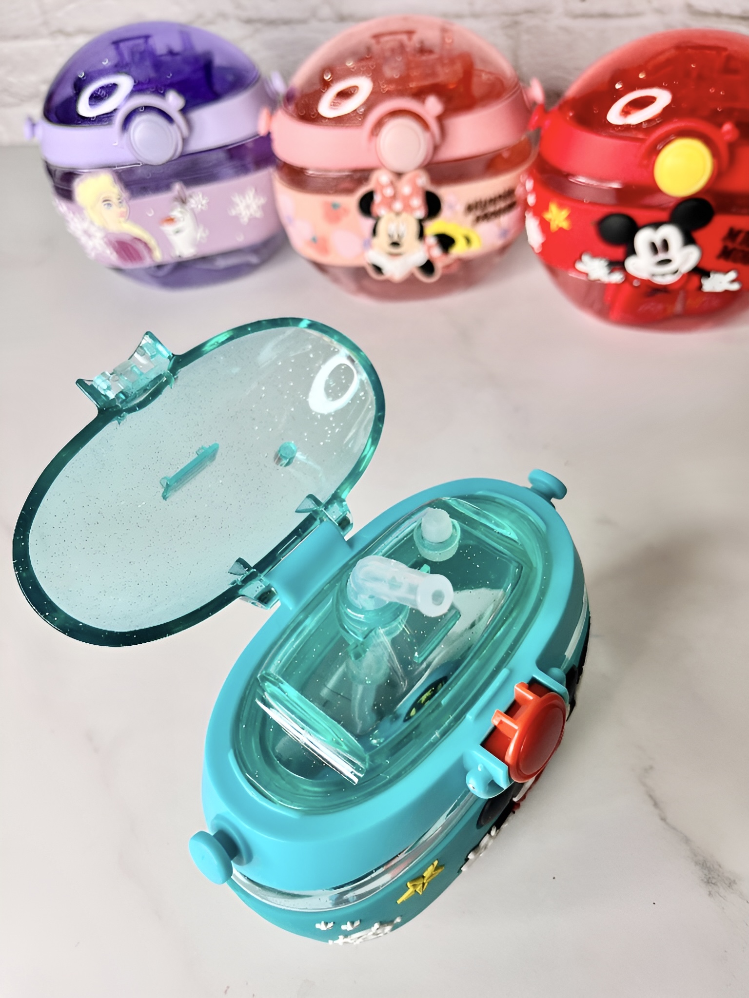 بدنهی شفاف و مقاوم آن با طرحهای کارتونی محبوب (میکی موس، مینی موس، السا و اولاف از فروزن) تزئین شده و در کنار بند قابلحمل، انتخابی عالی برای مهدکودک، مدرسه یا سفر است.