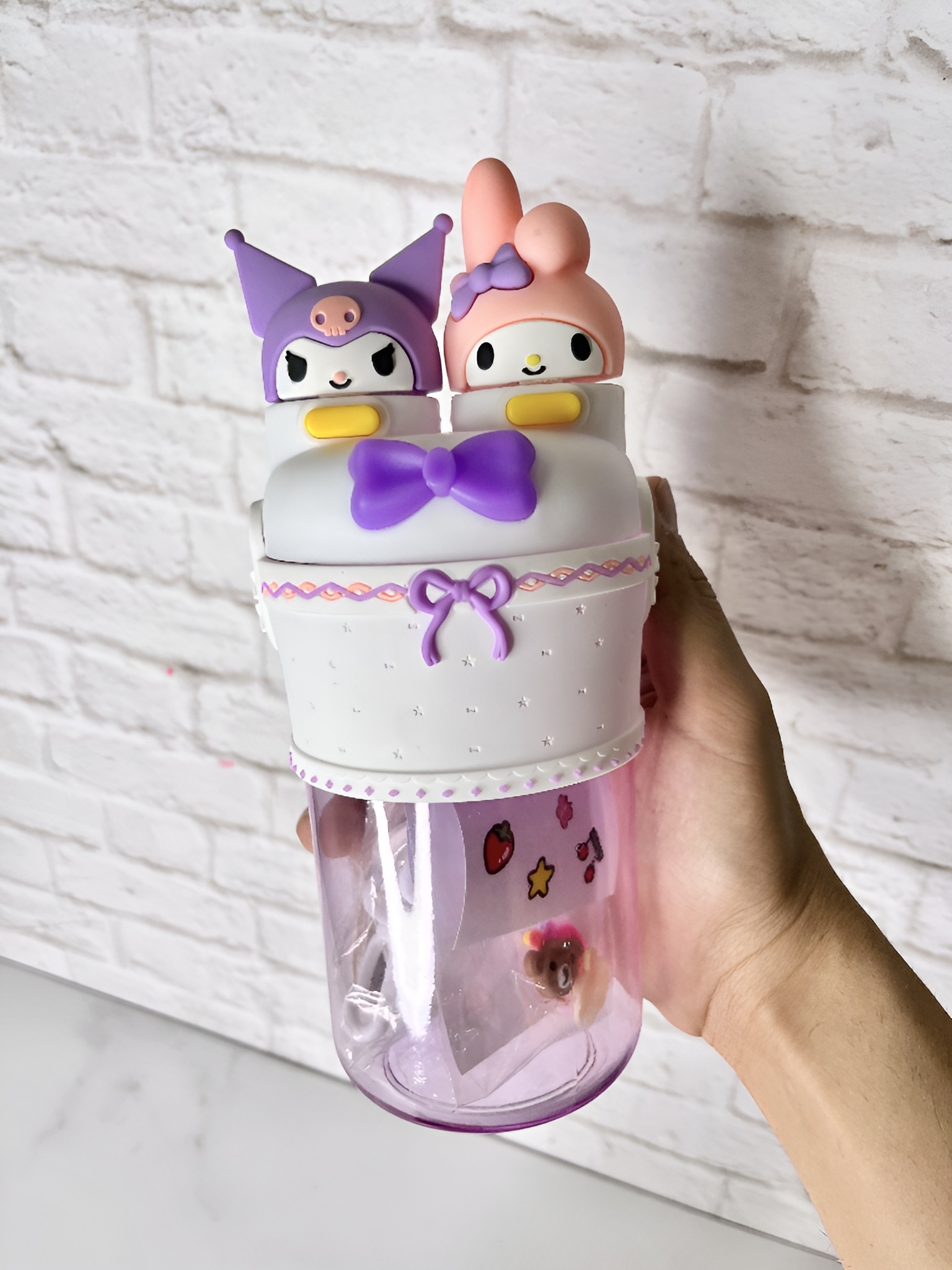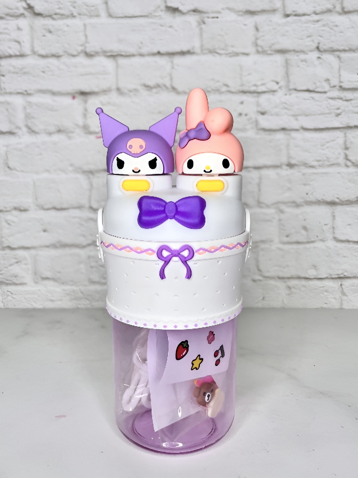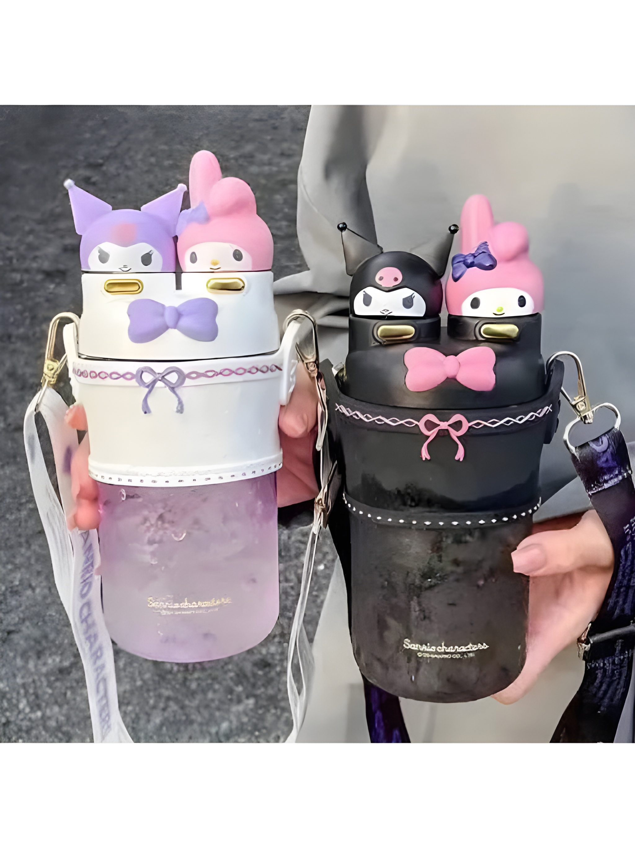 قمقمه کودک دو حالته طرح کاراکتری، با طراحی فوقالعاده فانتزی از شخصیتهای محبوب مای ملودی (My Melody) و کورومی (Kuromi)، گزینهای عالی برای بچههایی است که عاشق قمقمههای خاص و بانمک هستند.