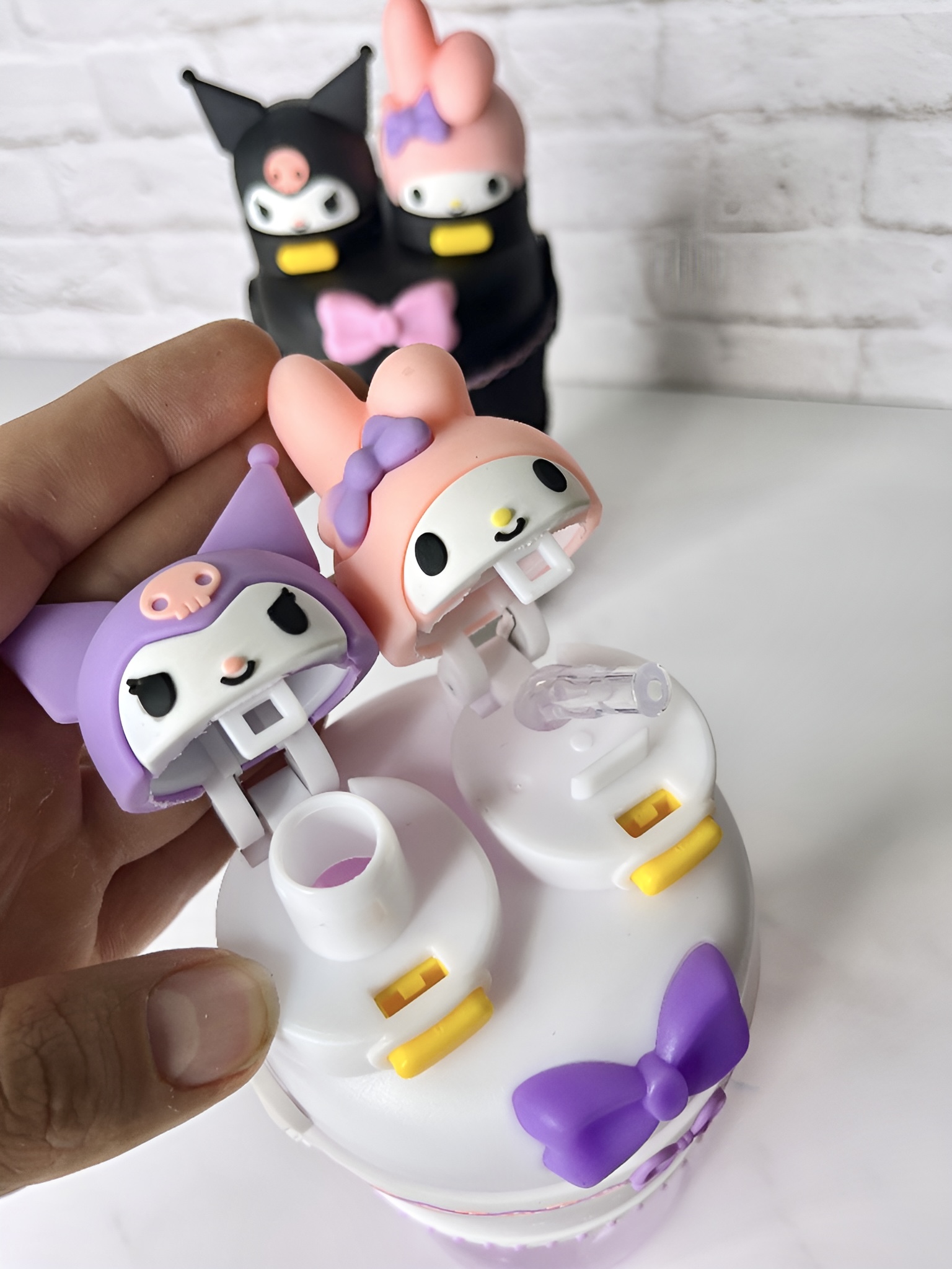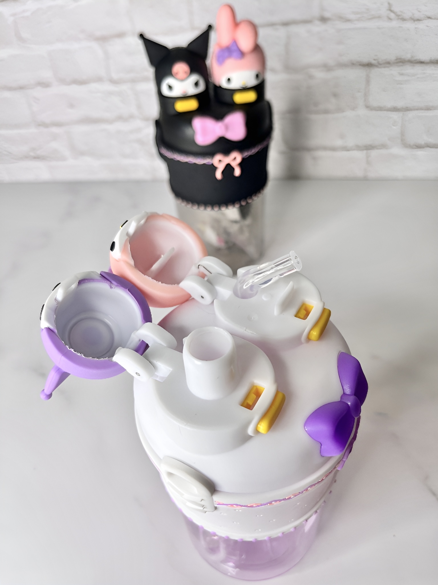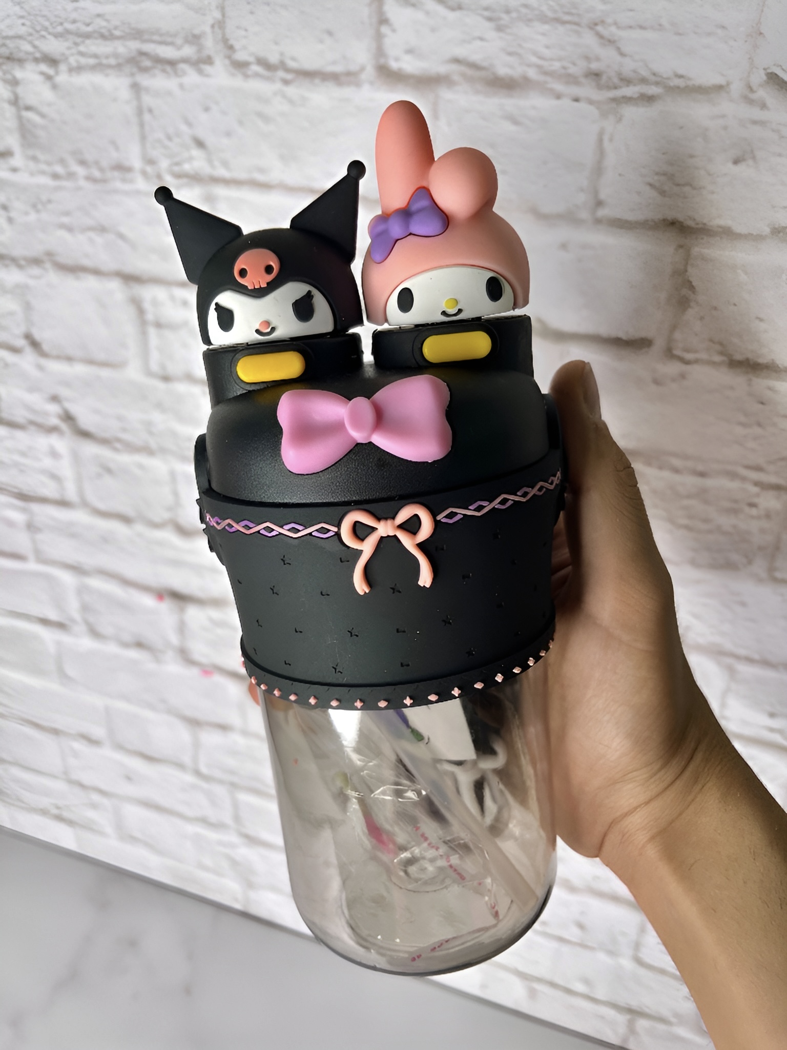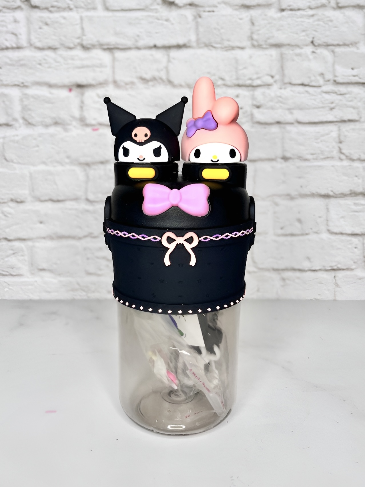 قمقمه کودک دو حالته طرح کاراکتری (My Melody & Kuromi) | قمقمه فانتزی با ابی سیلیکونی