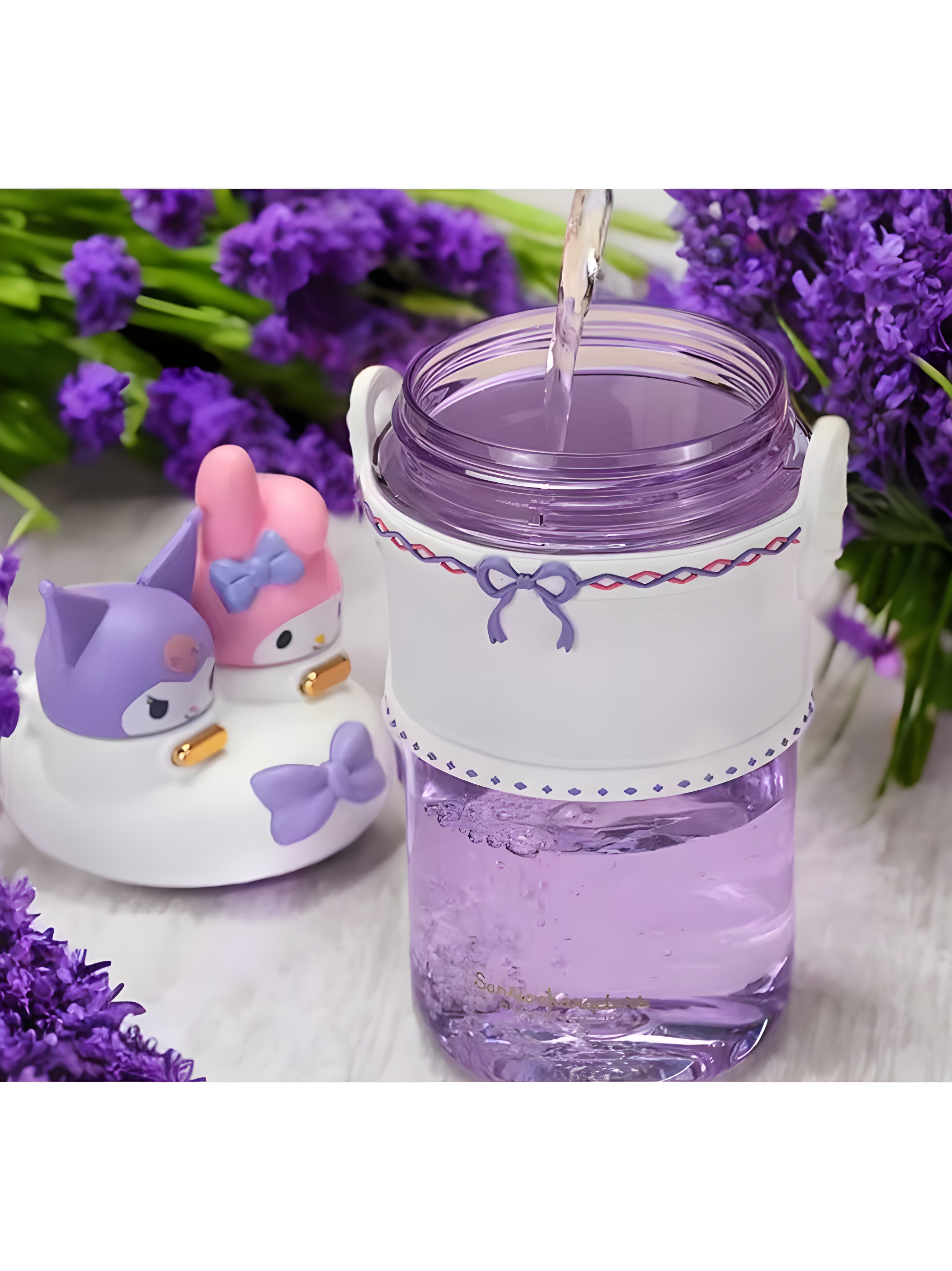 - 💜 بنفش و سفید – طرح My Melody & Kuromi با پاپیون بنفش