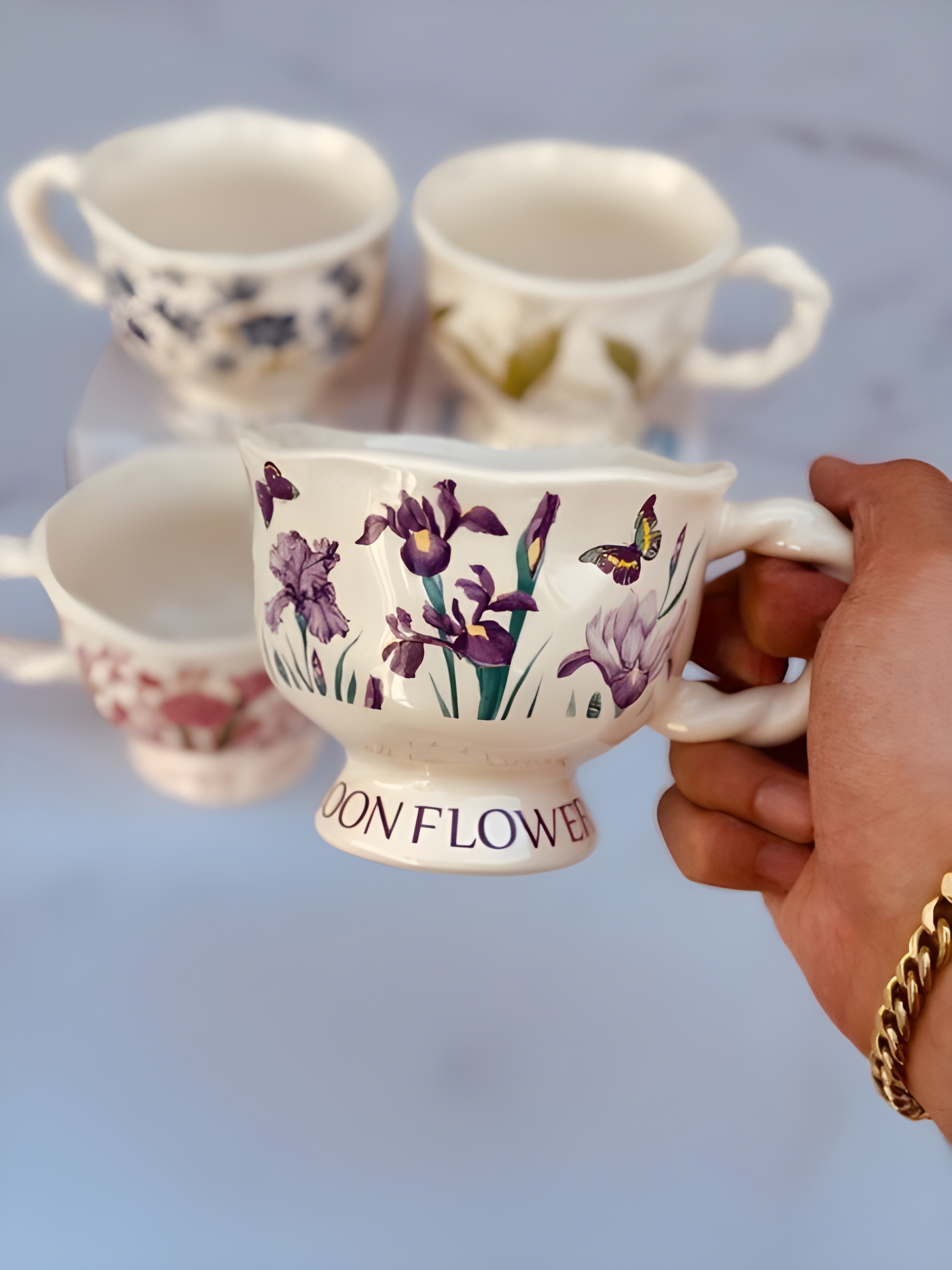 فنجان لاکچری رنسانس با طراحی الهامگرفته از هنر اروپایی و جنس سرامیک لعابدار. دارای ۴ رنگ و طرح بینظیر، قابل استفاده در ماکروفر و ماشین ظرفشویی. مناسب برای هدیه و دکور.