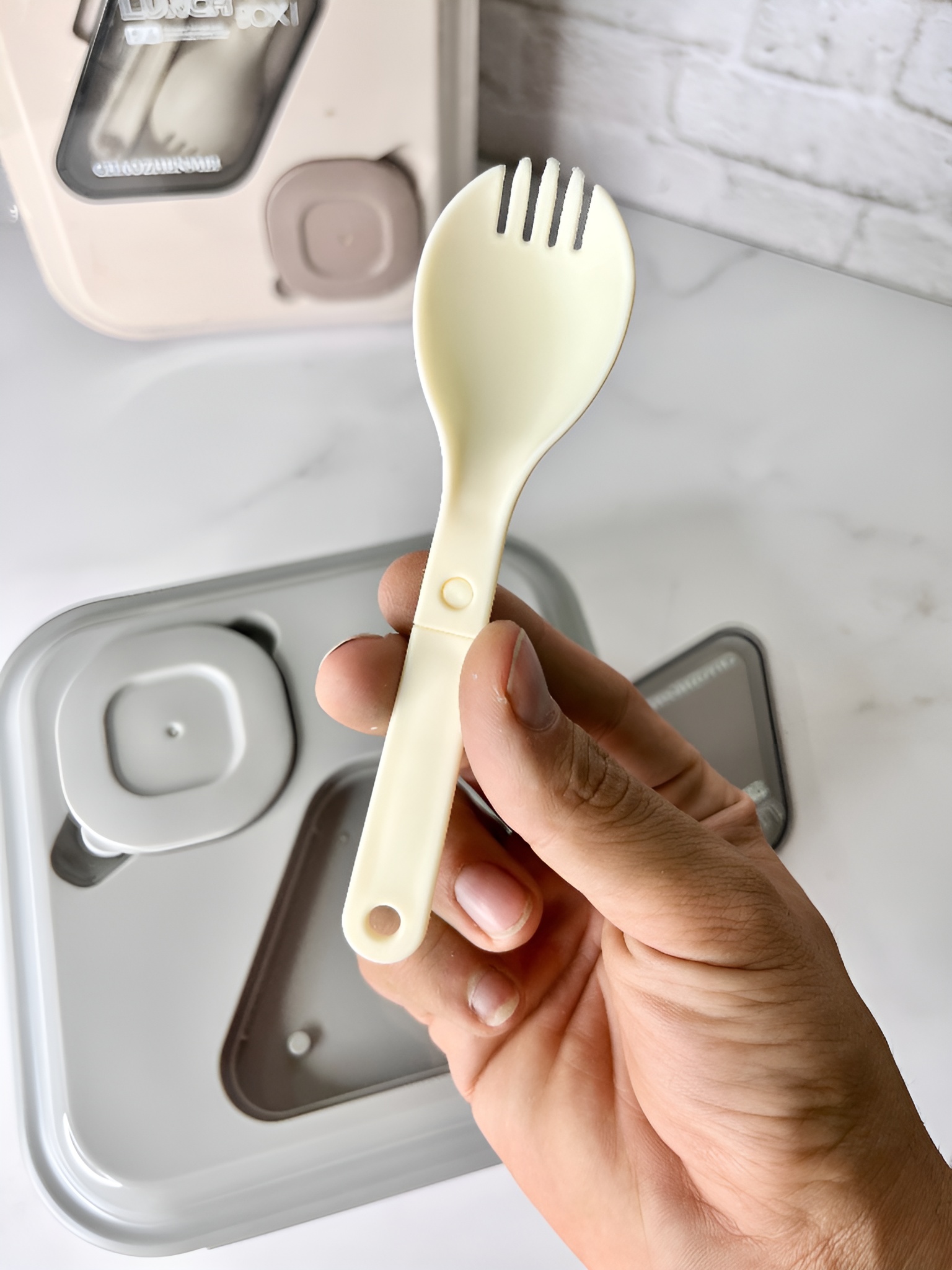 درب قفلدار و واشر سیلیکونی آن از نشت مایعات جلوگیری میکند و وجود قاشق و چنگال داخل محفظه مخصوص، حمل غذا را آسانتر و بهداشتیتر کرده است.