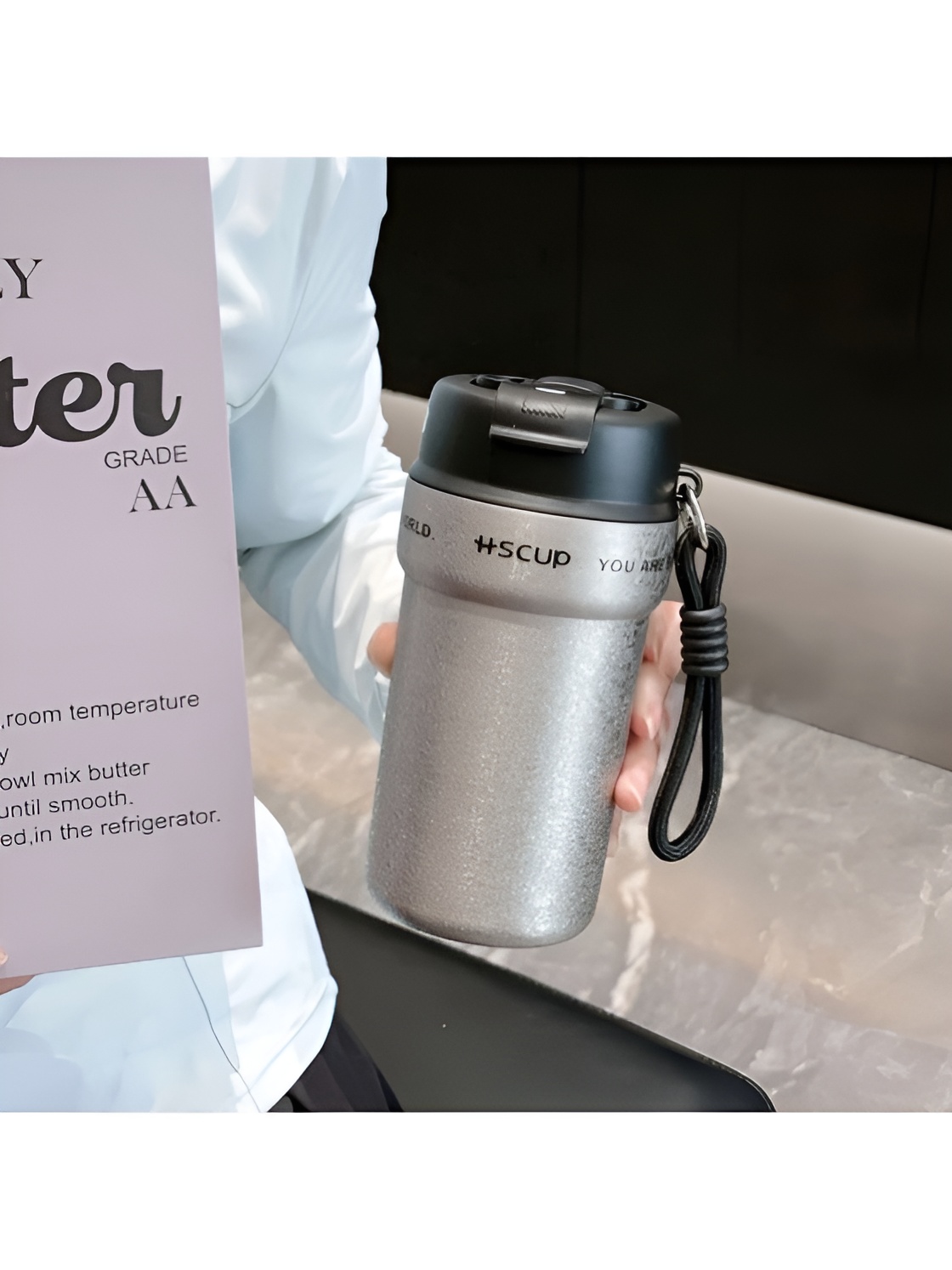 ماگ HScup فراتر از یک ظرف ساده است؛ یک ابزار طراحی شده برای سبک زندگی پویا. بند همراه این مدل، اتصال آن را به کوله یا کیف ممکن میسازد. این ویژگی برای افرادی که دستانشان معمولاً مشغول است، بسیار کارآمد است.