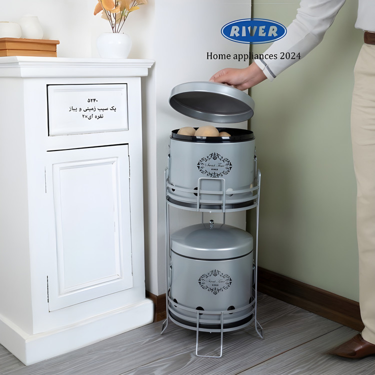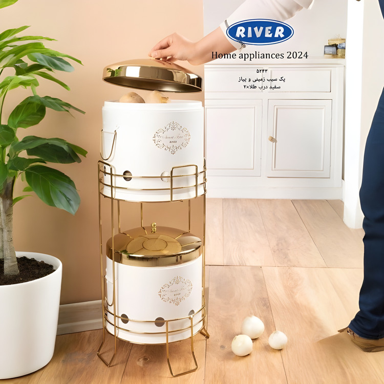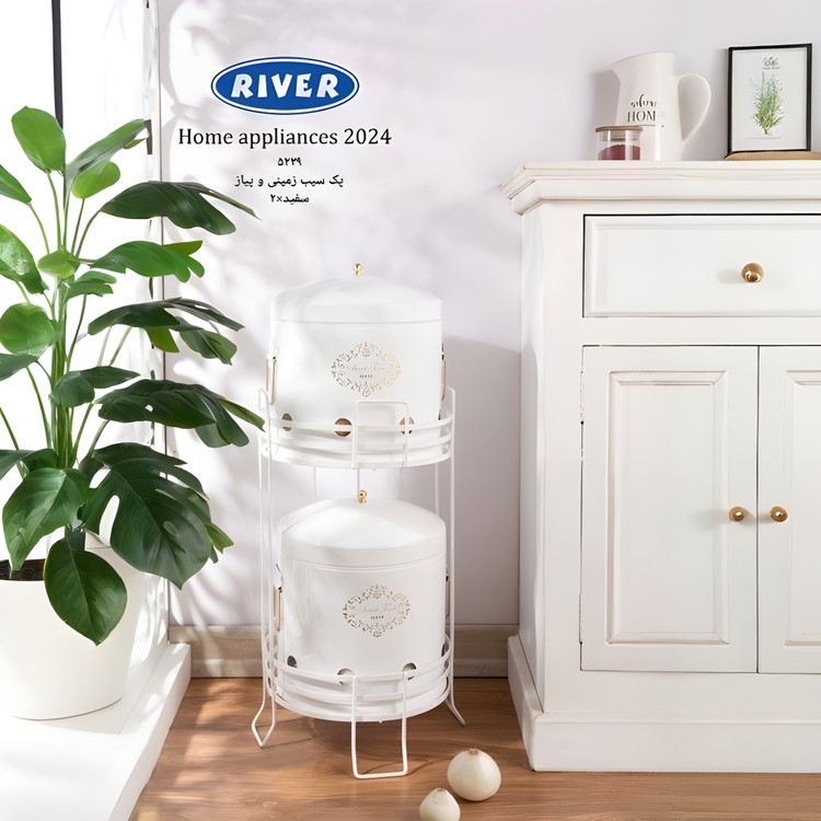 پک سیب زمینی/پیاز کرم ۲طبقه فلزی ریور، یک سبد عالی برای نگهداری و حمل سیب زمینی و پیاز است. این سبد دارای دو طبقه است که به شما امکان میدهد حجم و تنوع بیشتری از محصولات را در آن قرار دهید.
