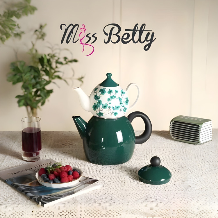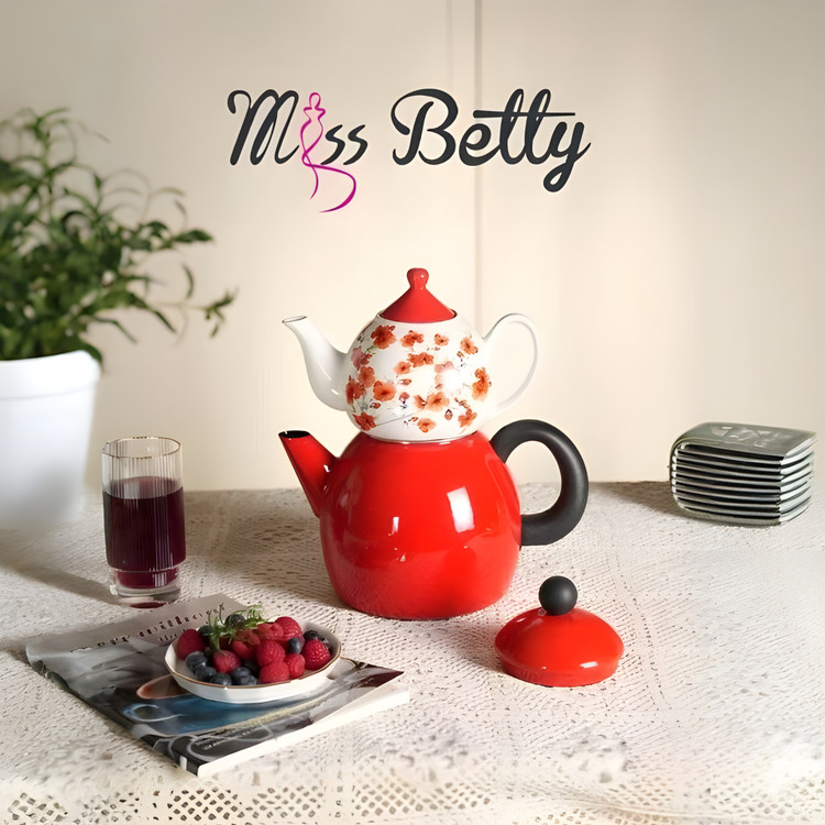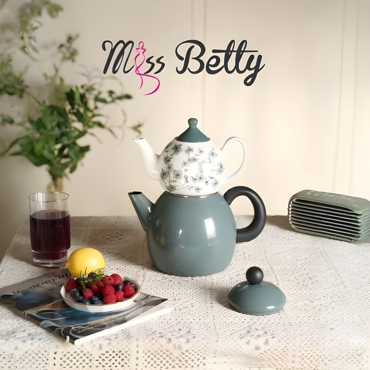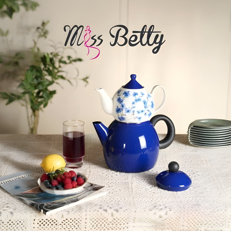 با كتري لعابي و قوري سراميكي